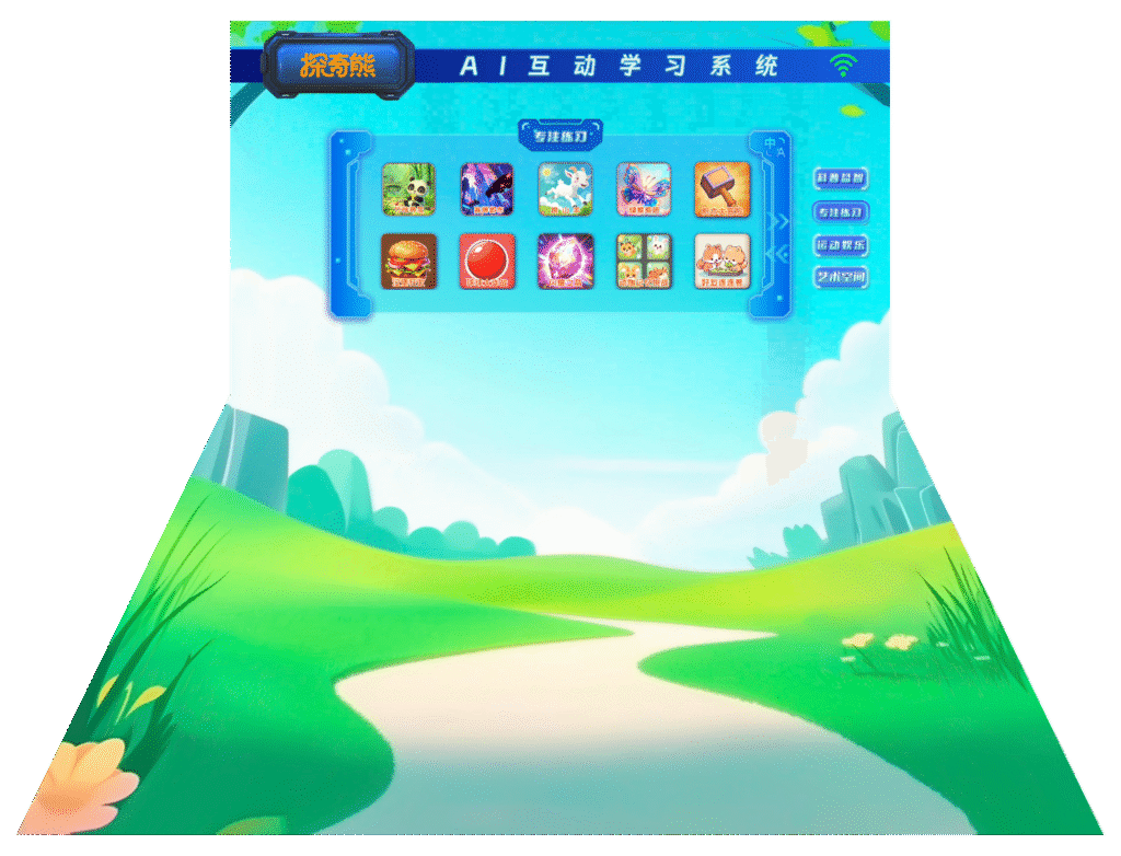 丰富内推生态,四大主题,超过60篇互动课件;支持应用商店OTA;立体式交互双雷达+体感互动。