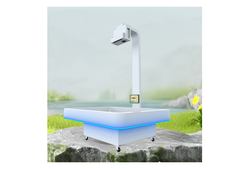 沙桌互动投影是一款创新的投影娱乐体验产品,结合了物理互动与数字影像投影技术,真实的沙子和绚丽的音像,将互动内容投射在沙桌上,通过挖沙等行为触发互动特效,使影像发生变化,该产品适合儿童的益智培养,支持同时多人进行。